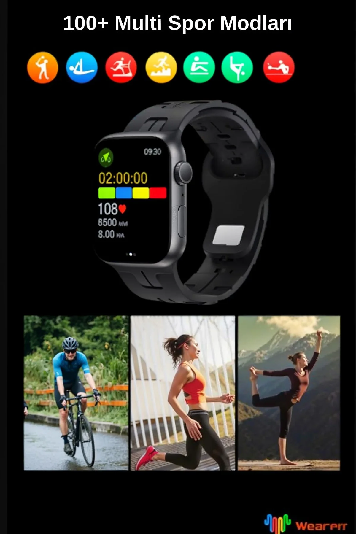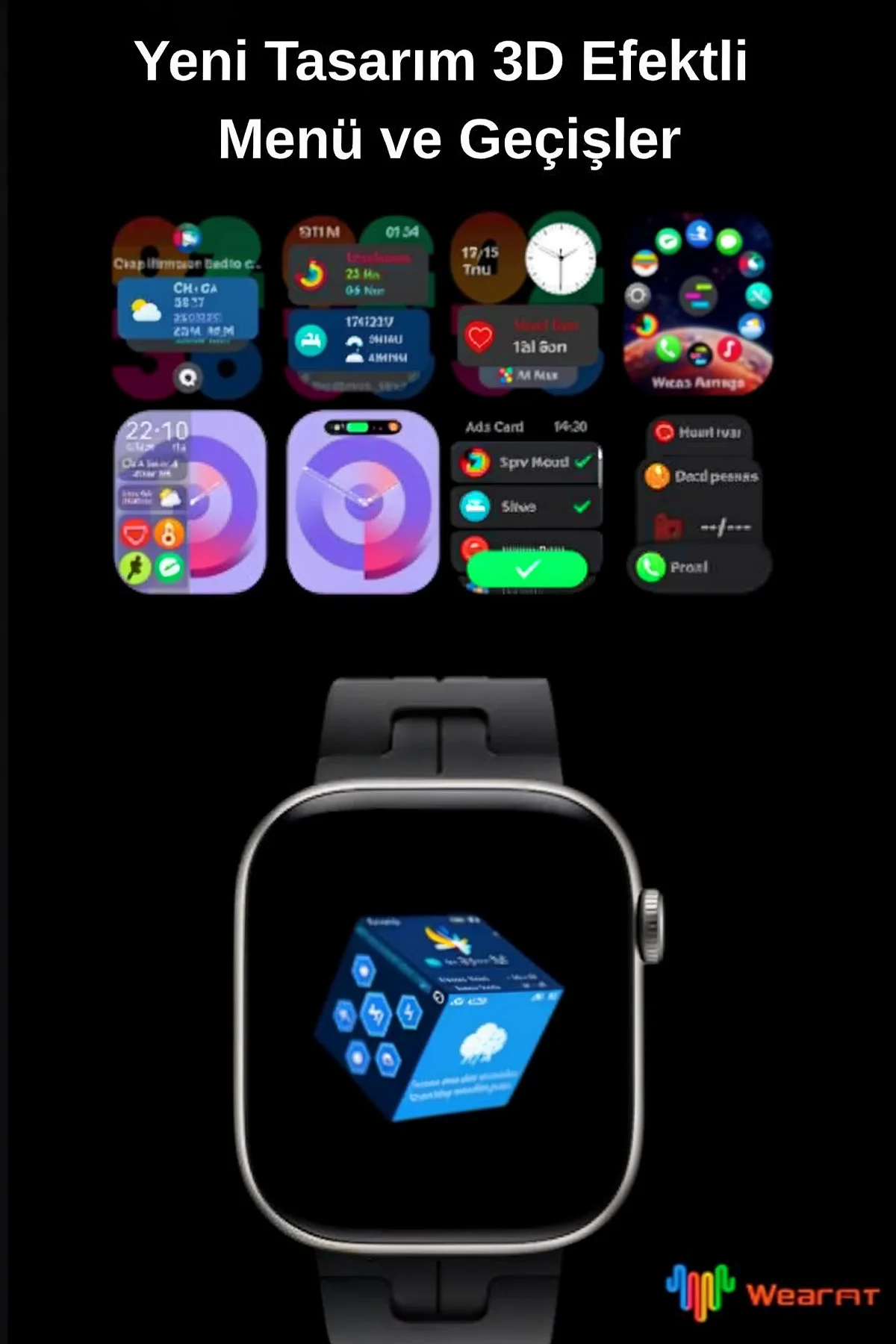 HK10 Mini akıllı saat, 1.75 inç AMOLED ekranı ve yüksek çözünürlük (485x520 piksel) ile net ve canlı görüntü sunar. Kompakt tasarımı sayesinde bilekte zarif bir duruş sağlar.
